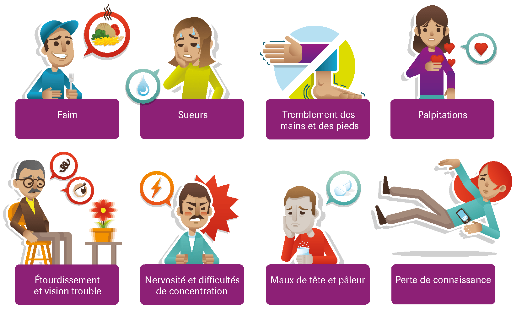 Apprenez à vos proches la conduite à tenir dans les situations suivantes. Vous êtes conscient(e) mais vous n’avez pas la force pour vous resucrer. Demandez à votre entourage de vous aider